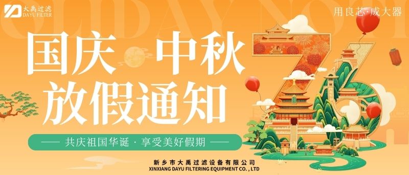 尊敬的客戶及合作伙伴:秋風(fēng)送爽,丹桂飄香。值此國慶與中秋雙節(jié)來臨之際,謹(jǐn)向您及家人致以zui誠摯的節(jié)日祝福!根據(jù)國家法定節(jié)假日安排,結(jié)合公司實(shí)際情況,現(xiàn)將2025年國慶+中秋雙節(jié)放假安排及相關(guān)事項(xiàng)通知如下:一、放假時間2025年10月1日(星期三)至10月6日(星期一),共計(jì)6天。10月7日(星期二)起正常上班。9月28日(周日)、10月12日(周日)補(bǔ)班。二、業(yè)務(wù)服務(wù)說明放假期間,公司線上咨詢通道保持暢通。銷售人員將不定期查看并回復(fù)您的咨詢,但受假期影響,可能存在回復(fù)延遲的情況,敬請諒解。如遇緊急事項(xiàng),您可撥打以下熱線:王經(jīng)理13613905650;李經(jīng)理13839073363,我們將竭誠為您服務(wù)。三、生產(chǎn)安排提醒因車間節(jié)前生產(chǎn)訂單已排滿,為確保假期前后生產(chǎn)質(zhì)量與效率,放假期間(10月1日至10月6日)將暫停安排新生產(chǎn)訂單生產(chǎn)。節(jié)前已下單的訂單將按原計(jì)劃正常推進(jìn),放假期間新接訂單將統(tǒng)一順延至10月7日復(fù)工后,按序安排生產(chǎn)。由此帶來的不便,我們深表歉意,感謝您的理解與支持。四、溫馨提示假期出行請注意安全,做好個人防護(hù)。公司官網(wǎng)及社交媒體平臺將持續(xù)更新節(jié)日動態(tài)及服務(wù)資訊,歡迎隨時關(guān)注。佳節(jié)共團(tuán)圓,服務(wù)不間斷。值此雙節(jié)同慶的美好時刻,衷心感謝您長期以來對我司的信任與支持!我們期待在節(jié)后以更飽滿的熱情、更優(yōu).質(zhì)的服務(wù)與您攜手同行,共啟新程!此致敬禮!新鄉(xiāng)市大禹過濾設(shè)備有限公司2025年9月28日